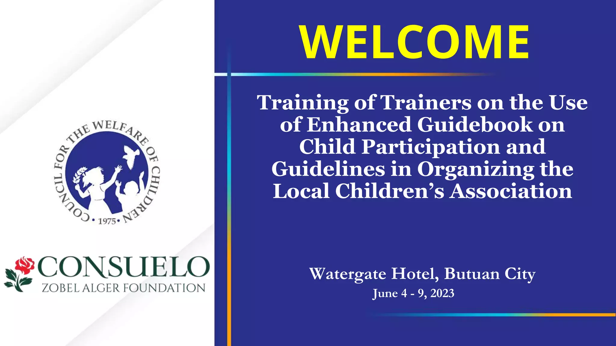 This document provides an overview of a training on the United Nations Convention on the Rights of the Child (UNCRC). It will take place from June 4-9, 2023 in Butuan City, Philippines. The training aims to increase participants' knowledge and appreciation of the UNCRC. The UNCRC is an international law that protects children's rights. It recognizes the rights of every child under age 18. The Philippines ratified the UNCRC in 1990. The document outlines the UNCRC's guiding principles, broad categories of rights, and implementation process. It also mentions the Philippines' submission of state compliance reports to the UN Committee on the Rights of the Child.