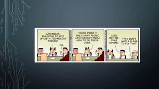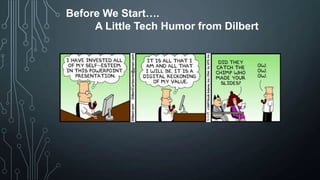 The document outlines a technology training session covering email management, file organization, cloud storage, tablet options, and computer security. It emphasizes the importance of organizing emails and documents, being cautious of email attachments to protect against threats like crypto locker, and suggests various cloud storage solutions. Additionally, it provides tips for using tablets and highlights updates related to the West Chester Connect service.