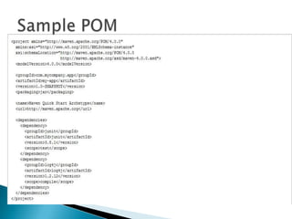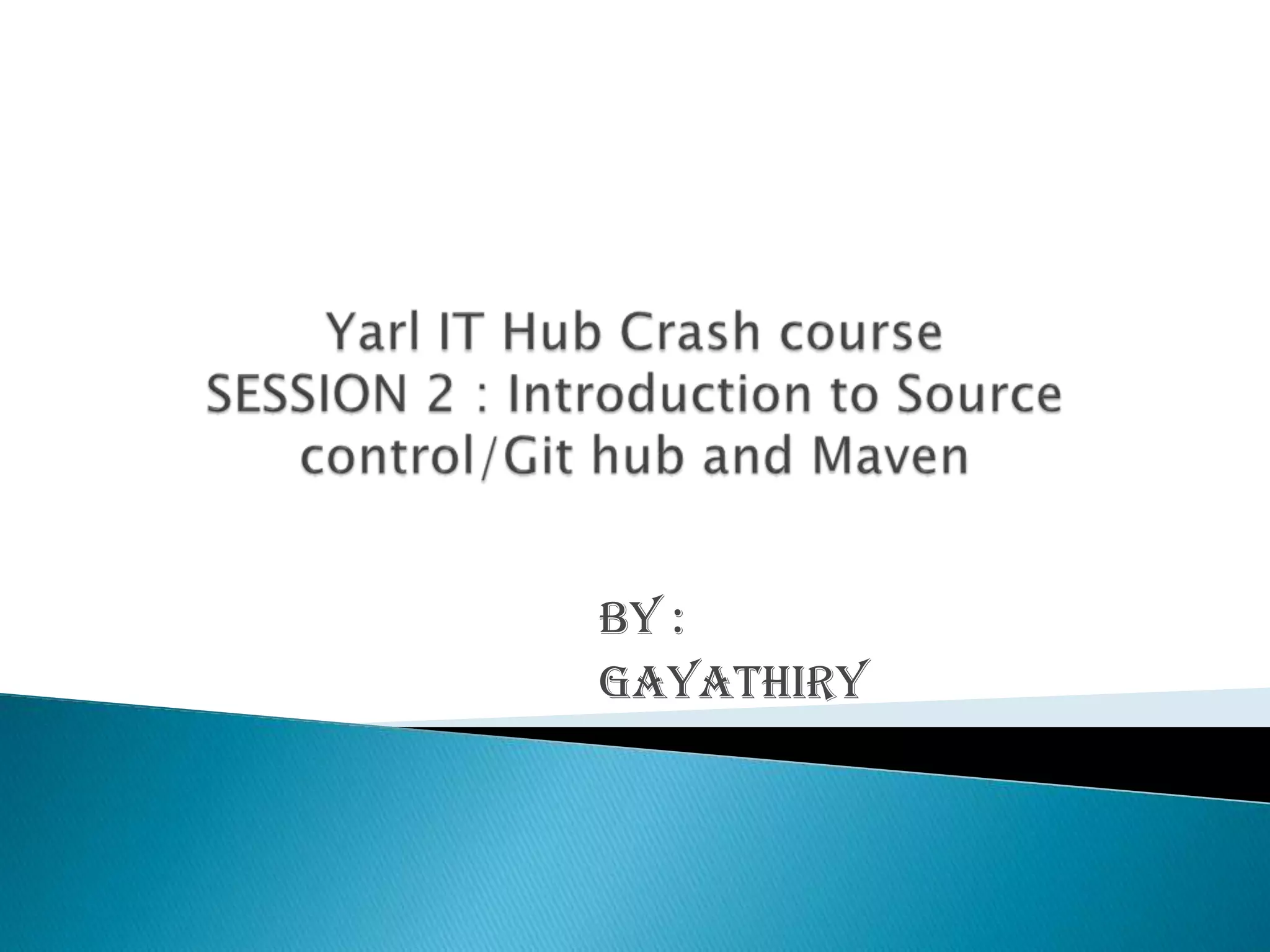 This document provides an overview of source control and version control using Git and GitHub. It discusses setting up projects with Maven and developing projects locally before pushing changes to GitHub repositories. The key points covered include: setting up source control with Git, forking and cloning repositories on GitHub, making changes locally and pushing updates via pull requests. Maven is also introduced for building Java projects and managing dependencies in an automated way.