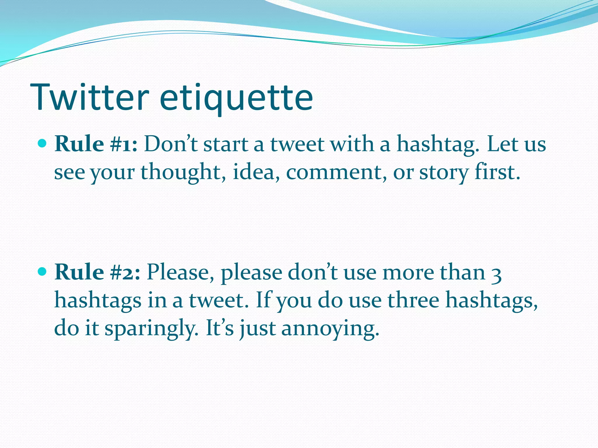 This document provides tips and rules for effective use of Twitter for business purposes. It outlines best practices like including a profile picture and description, engaging with followers by asking questions, and using hashtags sparingly. The document also introduces several tools for scheduling, analyzing, and managing tweets and follower engagement, such as Hootsuite, TweetDeck, and TweetReach. The overall message is that businesses should focus on creating valuable content and interactions over follower counts to build an engaged audience on Twitter.