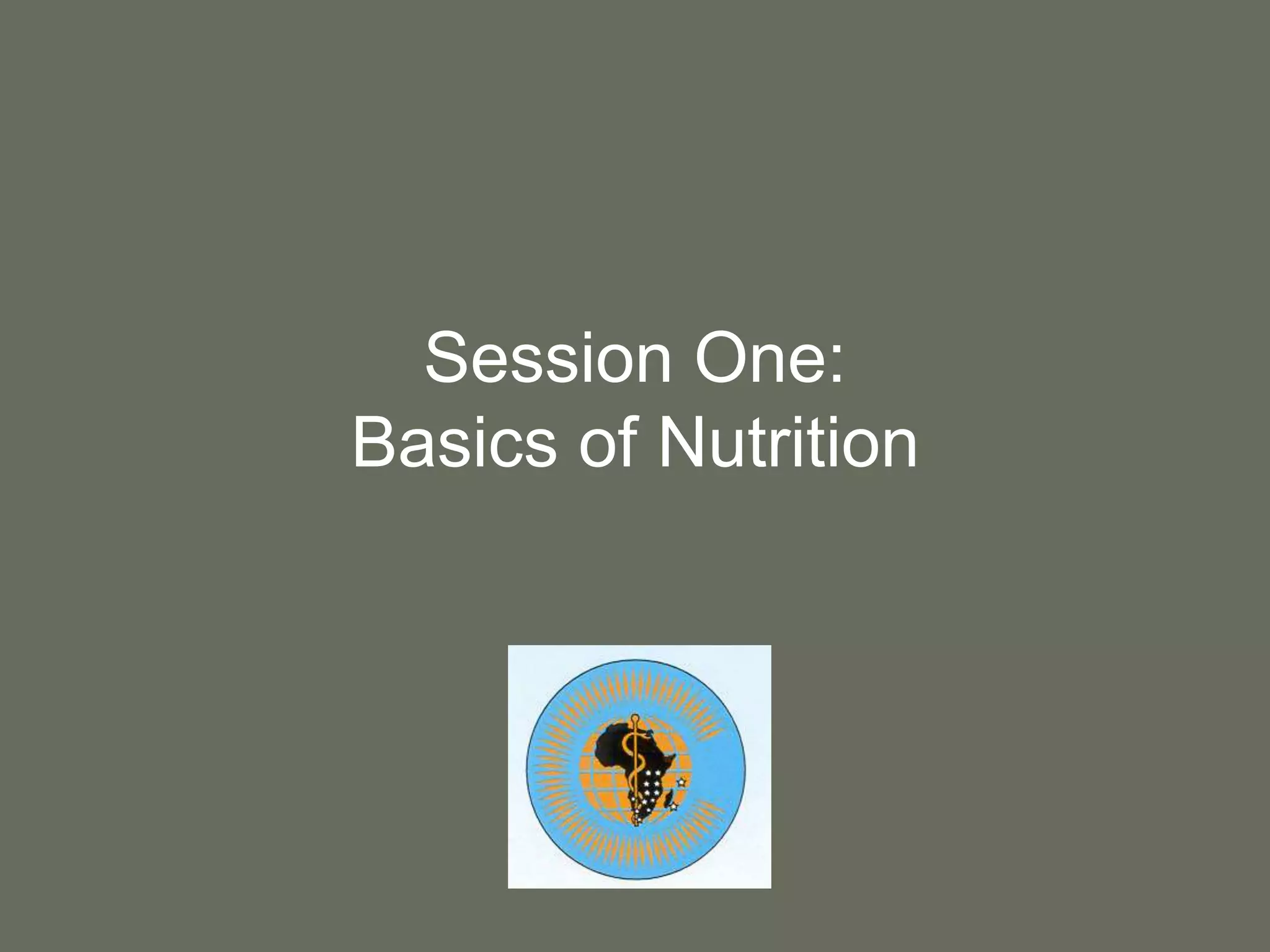 This document provides an overview of basic nutrition concepts including essential nutrients, their food sources, roles in the body, and consequences of deficiencies. It discusses national guidelines for good nutrition and combating undernutrition. Key points covered include macronutrients like carbohydrates, proteins, and fats; micronutrients like vitamins and minerals; causes and indicators of undernutrition like stunting and wasting; and strategies to prevent deficiencies such as food fortification, supplementation, and improving maternal and child nutrition.
