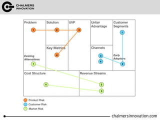 The document discusses the Lean Canvas and Value Proposition Canvas tools for startups. It explains that these tools help startups focus on understanding customer problems and developing solutions to those problems, rather than wasting time on full business plans. The Lean Canvas is used to map out key aspects of a startup idea including the customer segments, problems, solution, unique value proposition, channels, revenue streams, and costs. Understanding the customer's "jobs to be done" as well as their pains and gains is essential. The value proposition should communicate how the solution creates value by addressing these customer needs. Examples are provided and a workshop is outlined to help validate hypotheses.