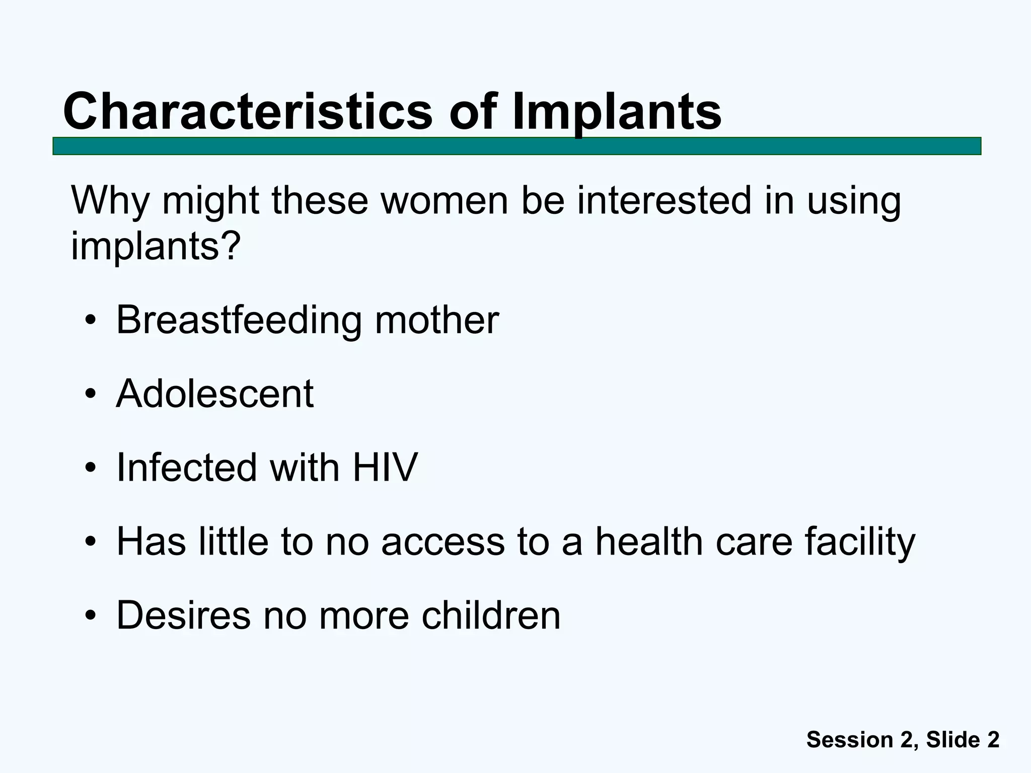 The document discusses guidelines for who can and cannot use contraceptive implants. It states that implants are safe and appropriate for nearly all women, including adolescents, women living with HIV/AIDS, and women who have had abortions or miscarriages. However, some women should not use implants, such as those who are pregnant or breastfeeding within the first 6 weeks after giving birth, or who have certain medical conditions like blood clots, breast cancer, or serious liver disease. The document reviews the WHO medical eligibility criteria for contraceptive methods and provides guidance on when implants can be initiated for different groups of women.