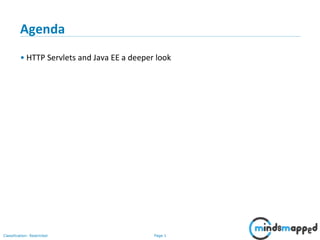 This document provides an overview of servlets and Java EE. It discusses what servlets are, how they work, their lifecycle, and how to handle GET and POST requests. Servlets are Java programs that extend HttpServlet to create dynamic web applications. They receive and respond to requests via doGet() and doPost() methods. The document also covers servlet API, environments for developing servlets, MIME types, and handling GET/POST requests by overriding doGet() and doPost(). The next session will demonstrate a complete web application flow with servlet coding.