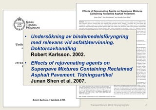 3 A f lt d 40 % åt fö d returasfalt påminner om nytillverkad asfalt