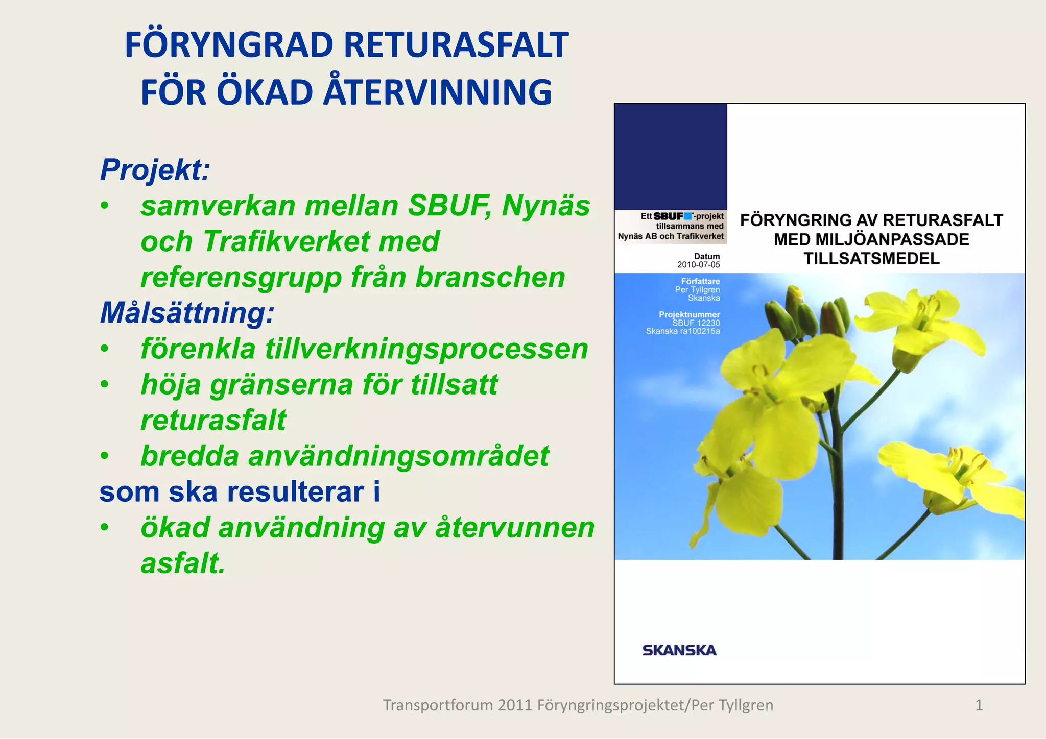 7. Med föryngrad returasfalt behövs inget kom mpenserande mjukare bitumen .