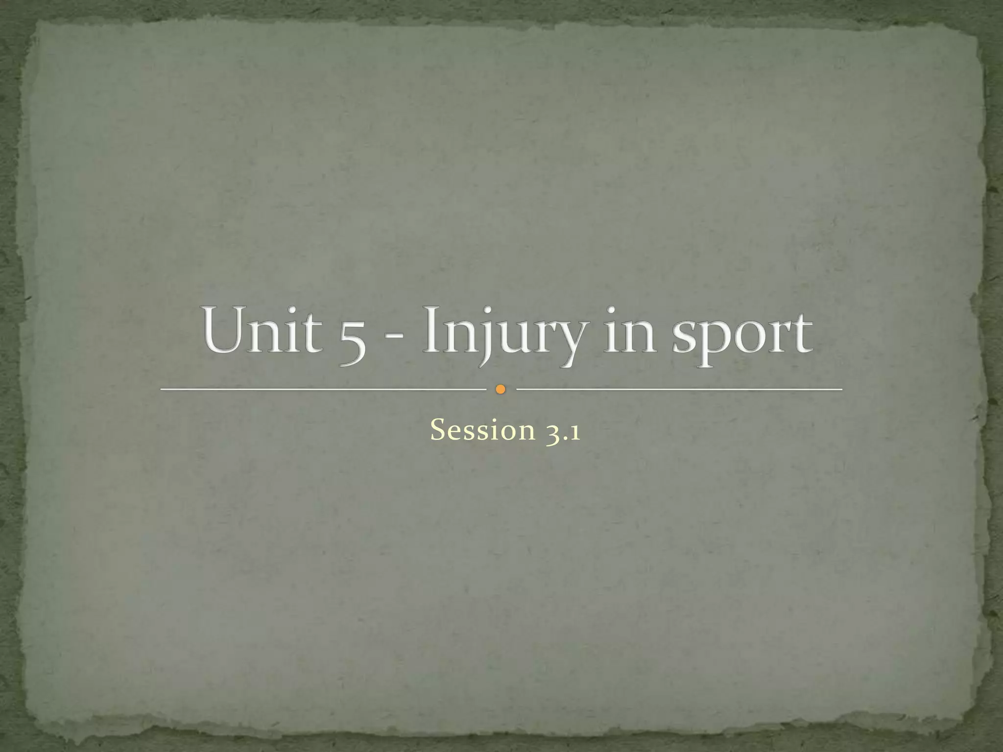 This document outlines an aim and objectives for a unit on injuries in sports. It identifies volleyball, tennis, and marathon running as sports where injuries may occur. For each sport, common injuries are listed such as concussions, dislocations, and overuse injuries for volleyball, sprains and strains for tennis, and blisters, sprains, and bruises for marathons. Prevention methods are also discussed, such as using splints, bandages, proper warmups, knee supports, insoles, and bunion shields. Students are assigned a task to create a poster explaining one injury from each sport.