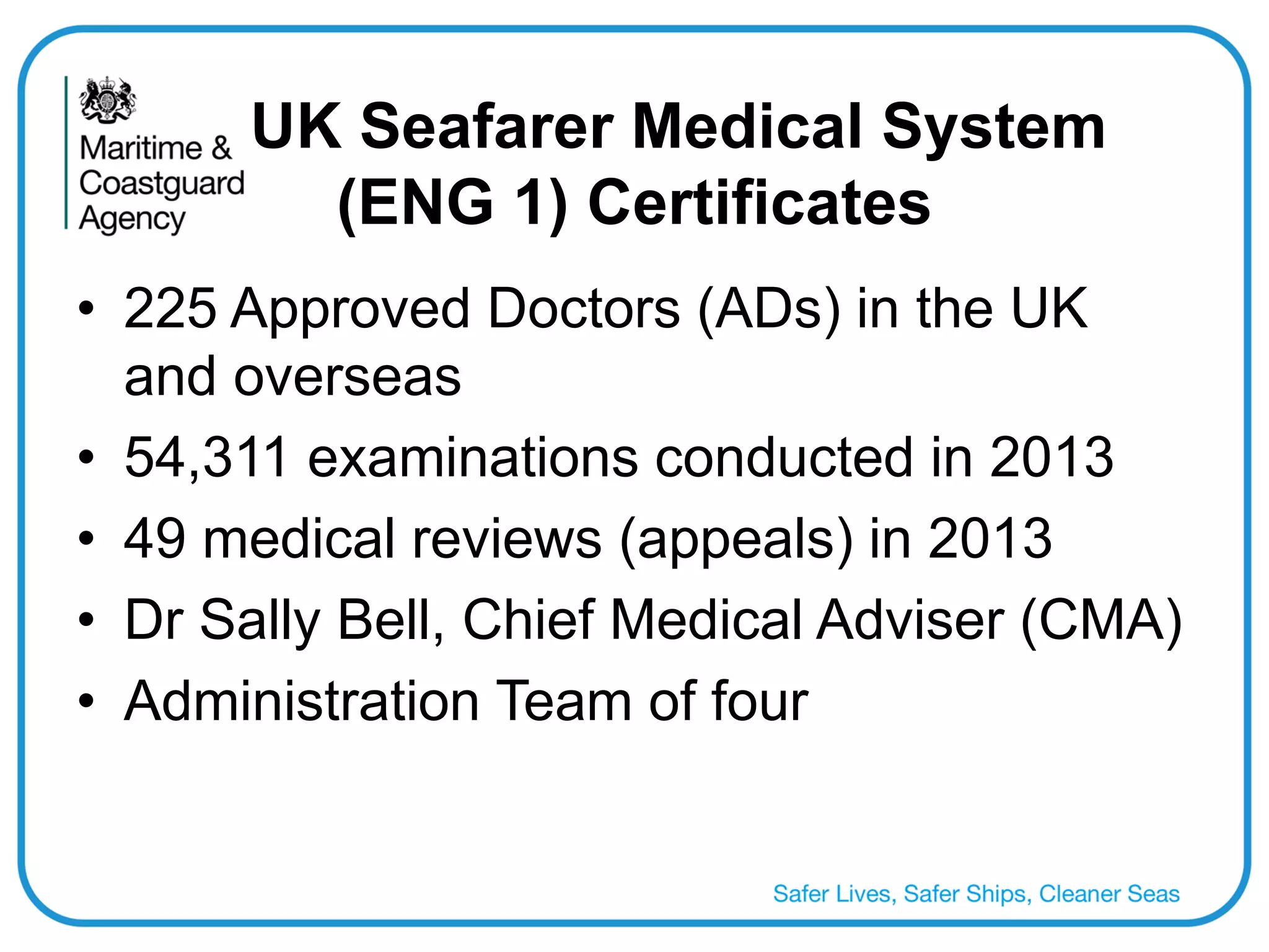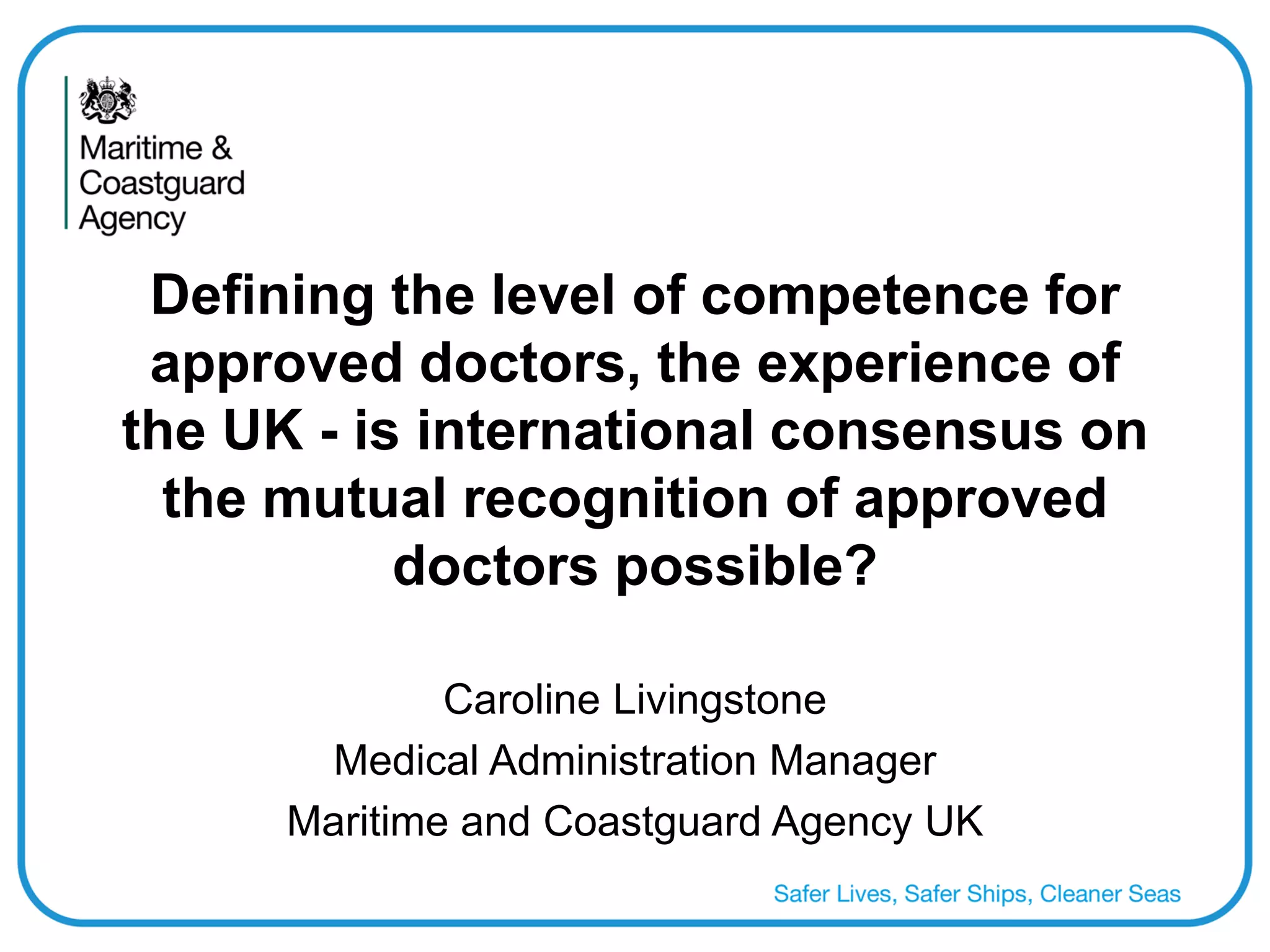 The document discusses the UK system for approving doctors to conduct seafarer medical examinations and potential international collaboration on mutual recognition. It notes there are 225 approved doctors in the UK and overseas, who conducted over 54,000 examinations in 2013. The UK provides support to doctors through medical standards, training, and oversight. International meetings have discussed aligning medical standards between countries like Norway, Germany, the Netherlands and the UK. While progress has been made in understanding each other's systems, further work is still needed before mutual recognition of approved doctors across countries can be achieved.
