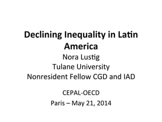 - On average, about 40% of the reduction in poverty across Latin America between 2001-2010 can be attributed to the decline in inequality rather than solely economic growth.
