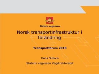 Innehåll i presentationenÖvriga riksvägar blir fylkesvägar 100 mrd. kr mer til transportinfrastruktur i 2010-2019 Ytterligare 60 mrd. kr i bompenger till vägutbyggnad Nytt system för kvalitetssäkring av stora projekter