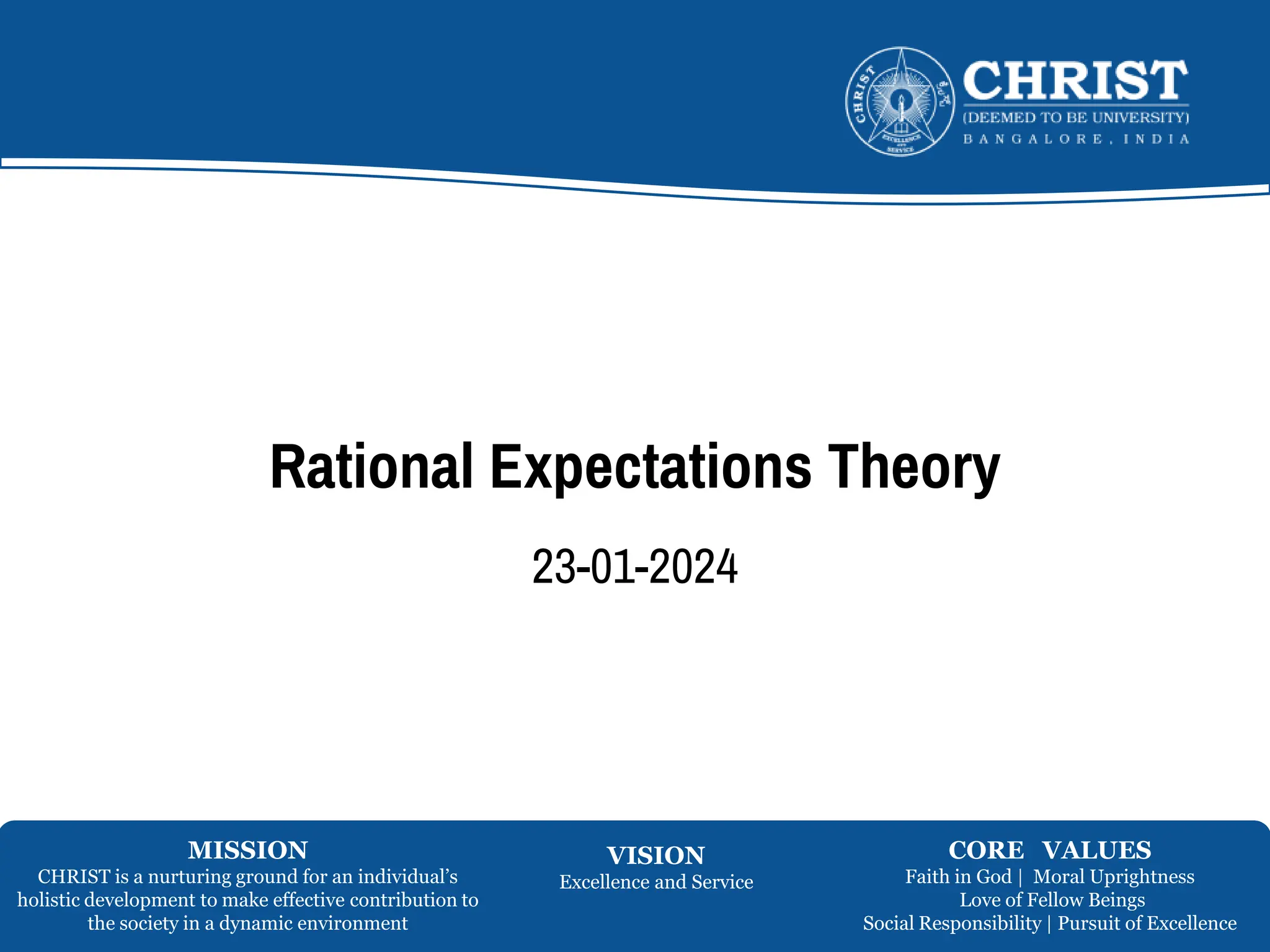The document outlines key concepts of rational expectations theory: