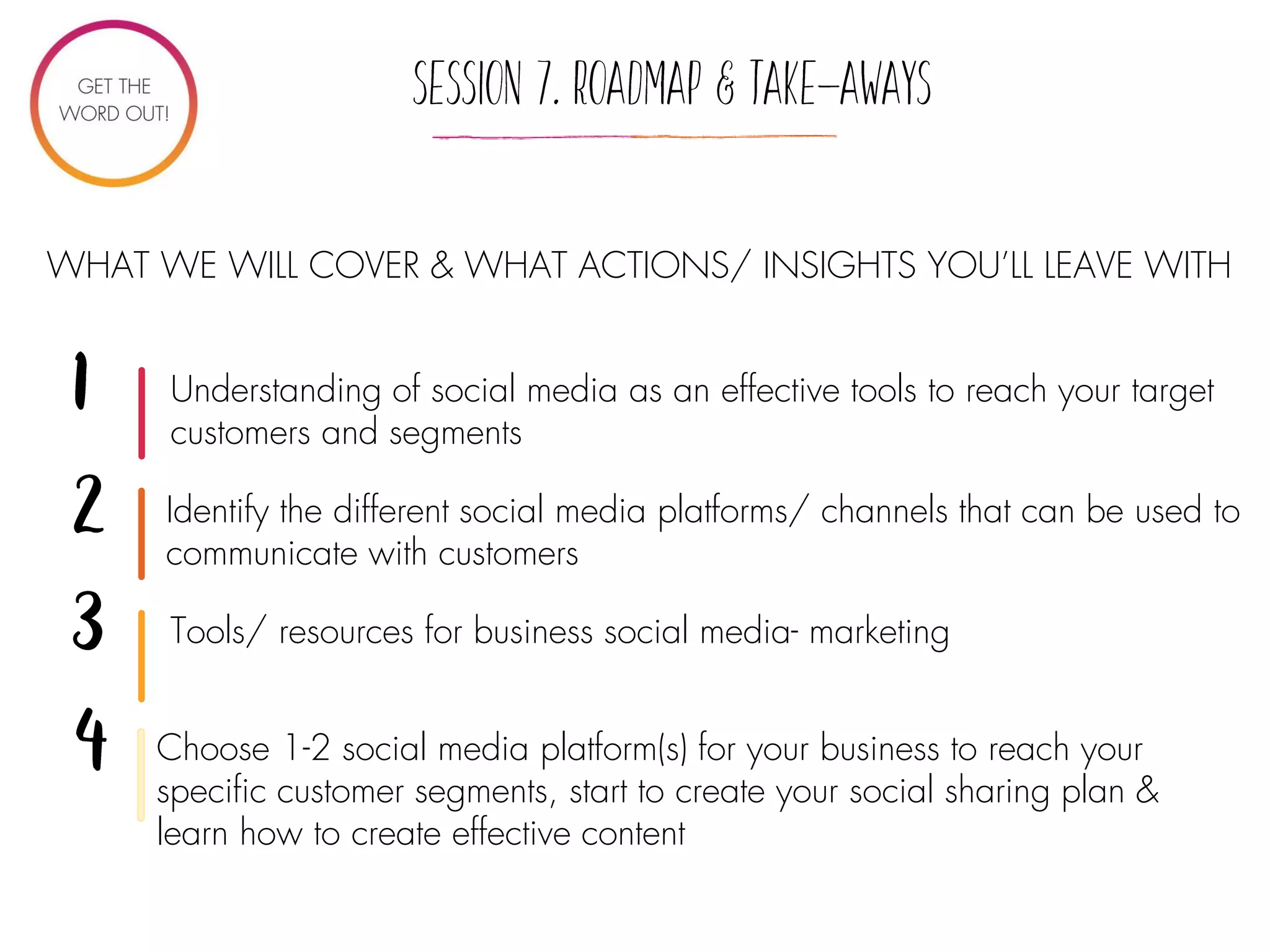 The document outlines a framework for using social media to effectively communicate with customers and build brand awareness. It covers selecting appropriate platforms, developing a social sharing plan, creating content, and engaging with customers while providing tools and resources for measurement and management. Additionally, it emphasizes the importance of responsiveness to customer feedback and reputational risk management in social media strategy.