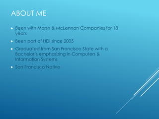 This document outlines how desktop support is changing and provides recommendations for adapting to the future. It notes that desktop support is moving from on-site hardware support to remote support of a variety of devices. It recommends developing business skills, understanding current technologies, leveraging transferable skills, and continuous learning. The document suggests attending HDI meetings to learn about industry trends and best practices. It provides an agenda for an upcoming meeting focused on career paths, interactions with the service desk, and technology forecasts. The overall message is that desktop support professionals must adapt to remain valuable by focusing on the user experience and business needs rather than specific devices.