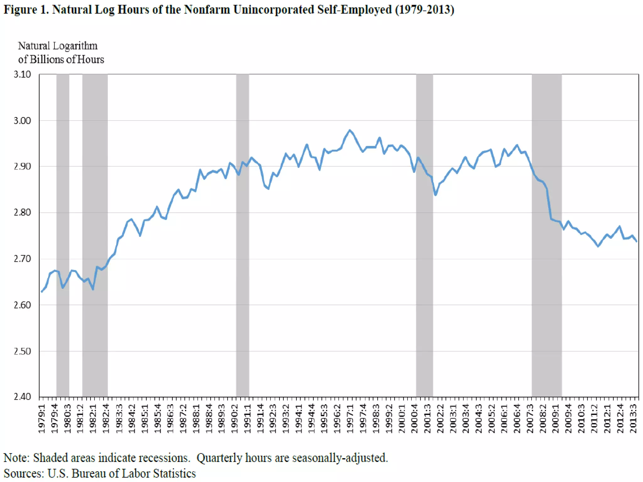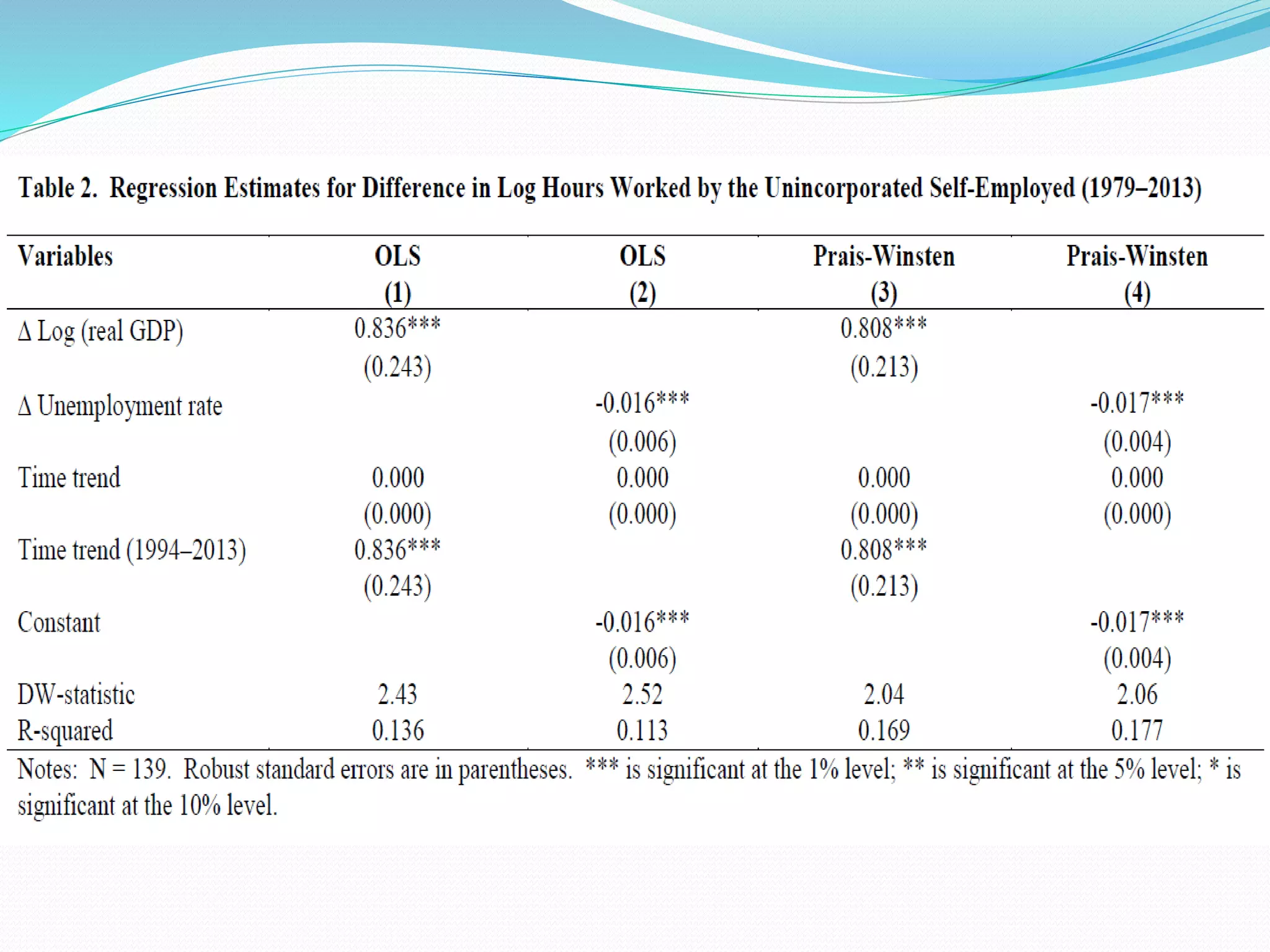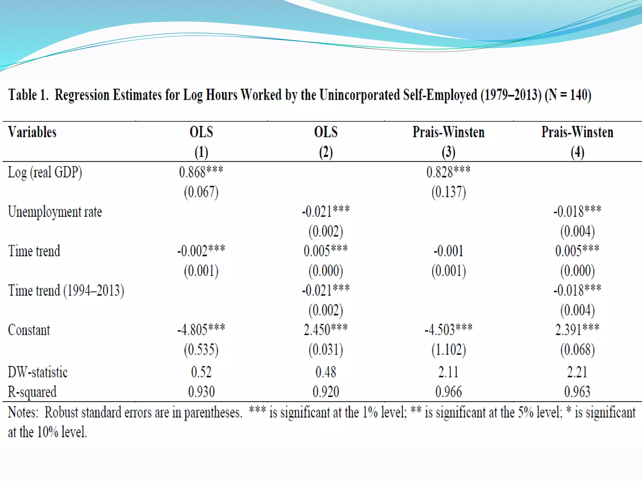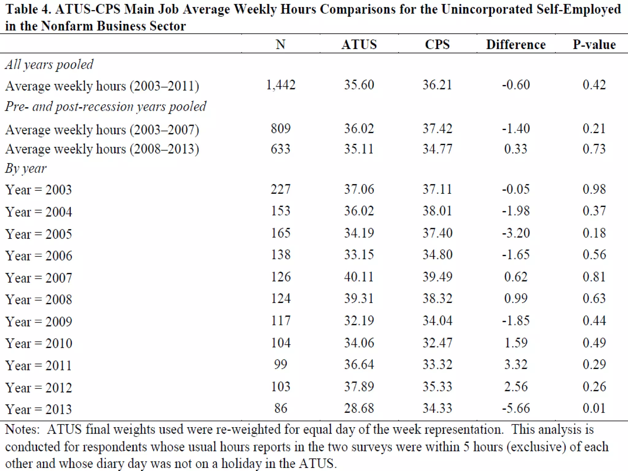 This document summarizes a research paper that examines the work hours of unincorporated self-employed workers in the US using data from the Current Population Survey (CPS) and American Time Use Survey (ATUS). The paper finds that (1) work hours of the unincorporated self-employed are procyclical and correlate with GDP and unemployment rates, and (2) the ATUS data provides a more accurate measure of work hours for this group than the CPS, though both surveys have limitations. The paper also discusses two competing theories about how self-employment relates to the business cycle and aims to determine which theory the data supports.