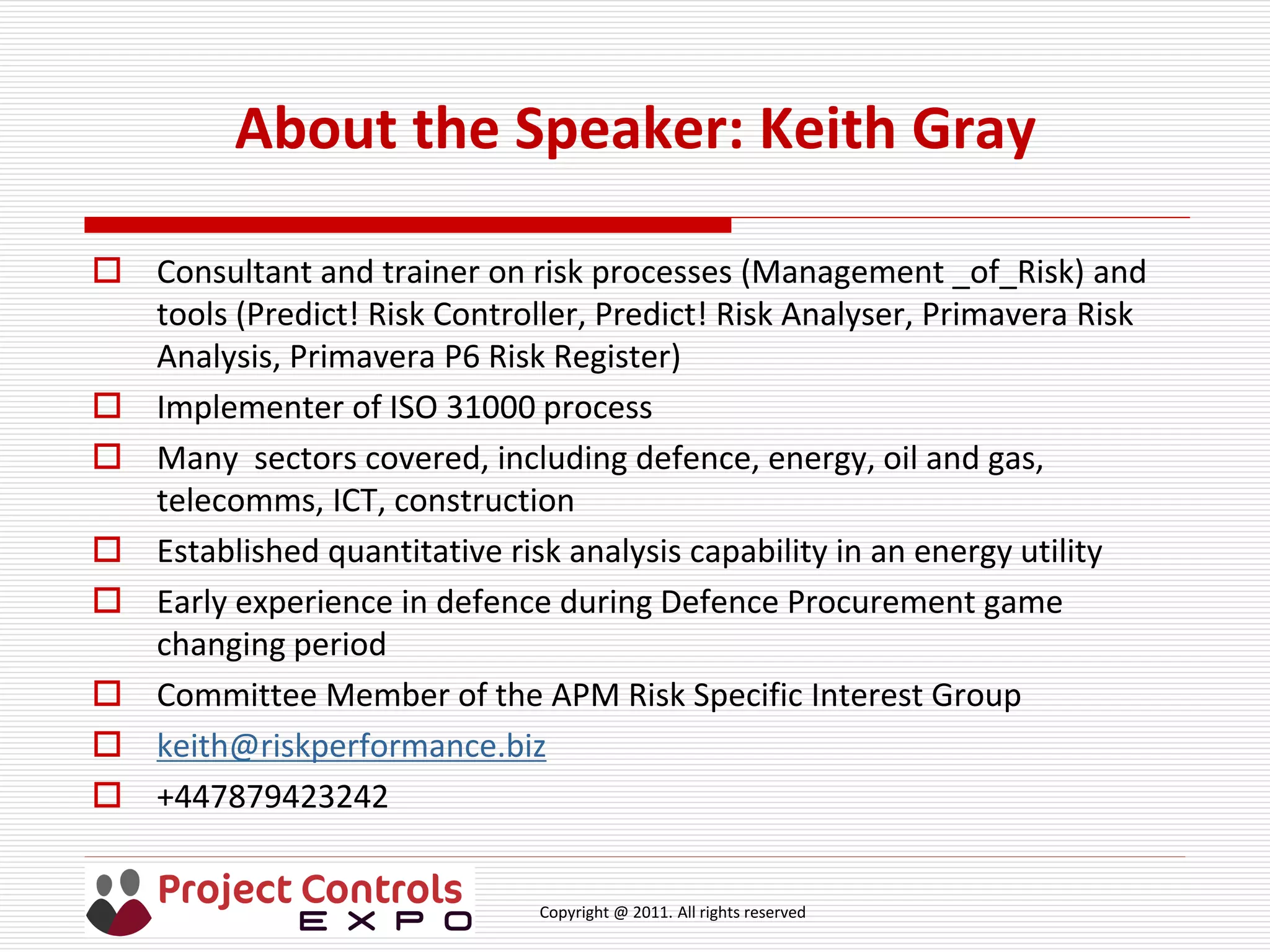This document provides an overview of project cost and schedule risk analysis. It discusses key terms like risk, uncertainty, and probability. It outlines the ISO 31000 risk management process, including steps like risk identification, analysis, evaluation, and treatment. Monte Carlo simulation is presented as a technique for modeling project schedule and cost uncertainty based on risk. The document emphasizes establishing the context, identifying risks and impacts, and using a risk matrix to evaluate and prioritize risks in order to inform project planning and management.