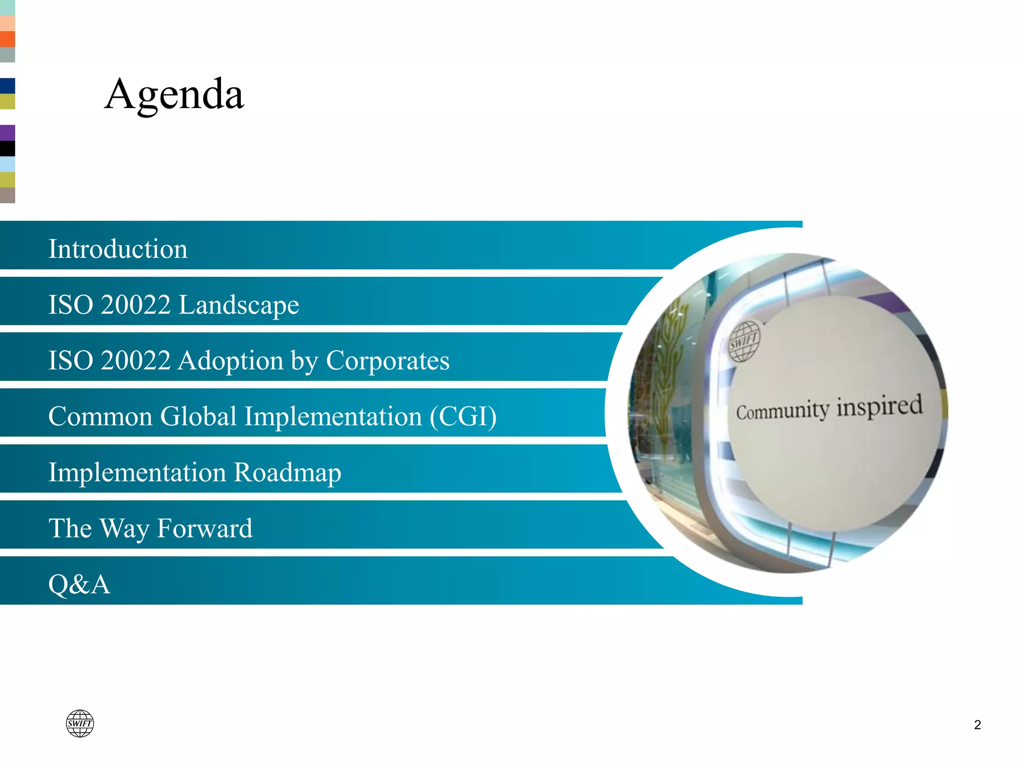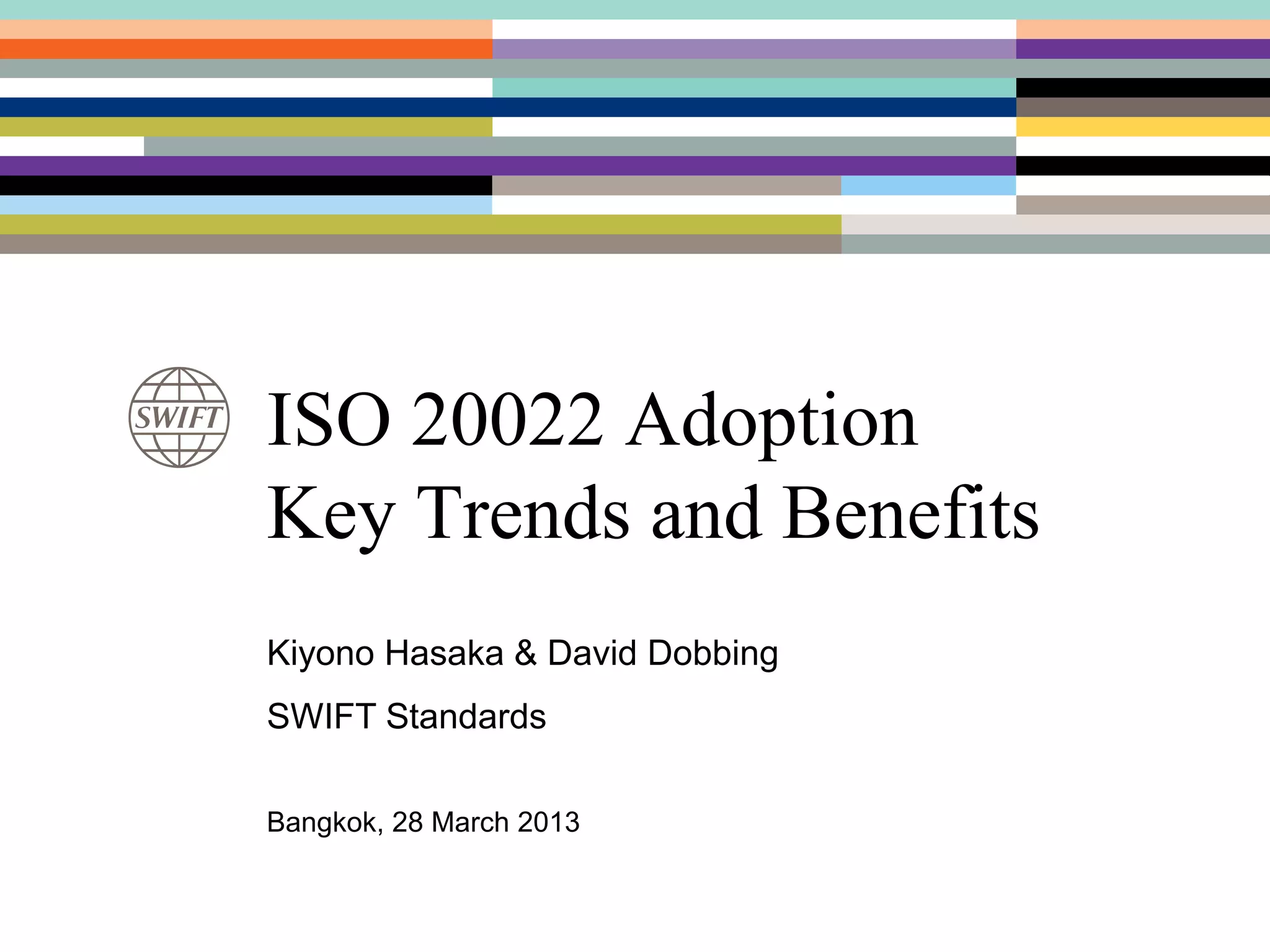 This document discusses ISO 20022 adoption trends and benefits. It provides an agenda for a presentation on ISO 20022 including an introduction to SWIFT, the ISO 20022 landscape, and adoption by corporates. ISO 20022 is a global standard for financial messages that allows for flexibility and future-proofing. It is increasingly being adopted around the world for payments and securities. Adopting ISO 20022 can provide benefits like global interoperability, increased straight-through processing, and cost efficiencies.