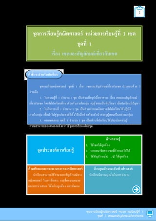 2 ชุดการเรียนรู้คณิตศาสตร์ หน่วยการเรียนรู้ที 1