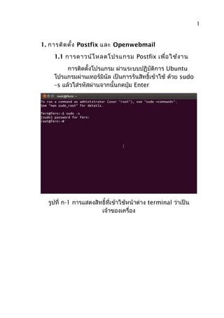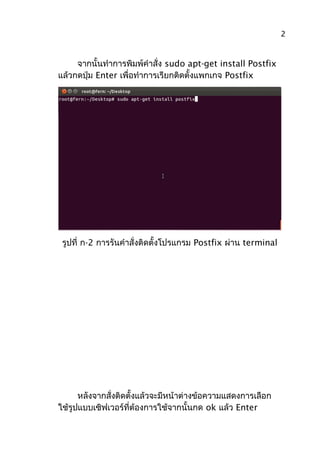 รูปที่ ก-2 การรันคำาสั่งติดตั้งโปรแกรม Postfix ผ่าน terminal