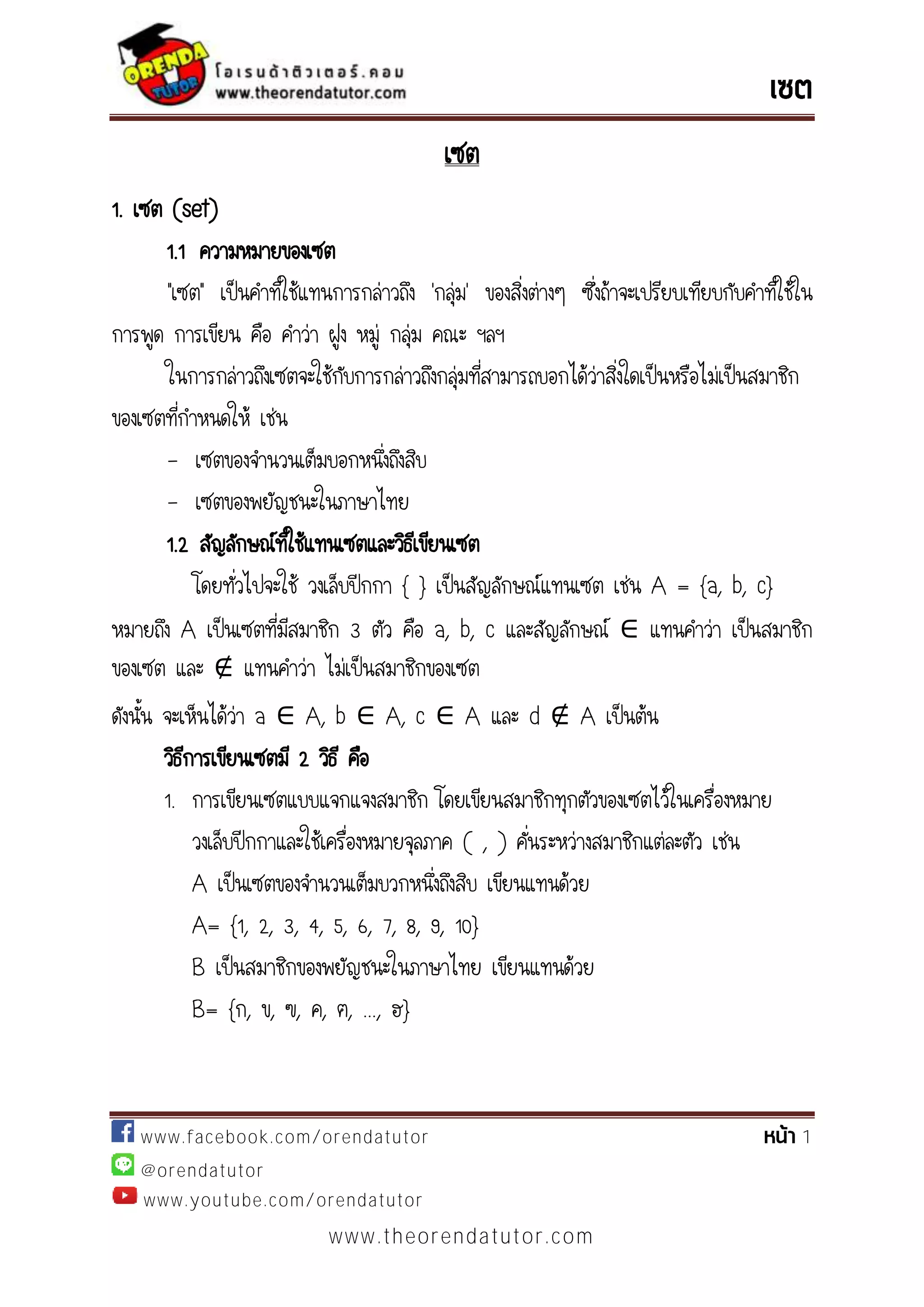 1.3 การเท่ากันของเซต