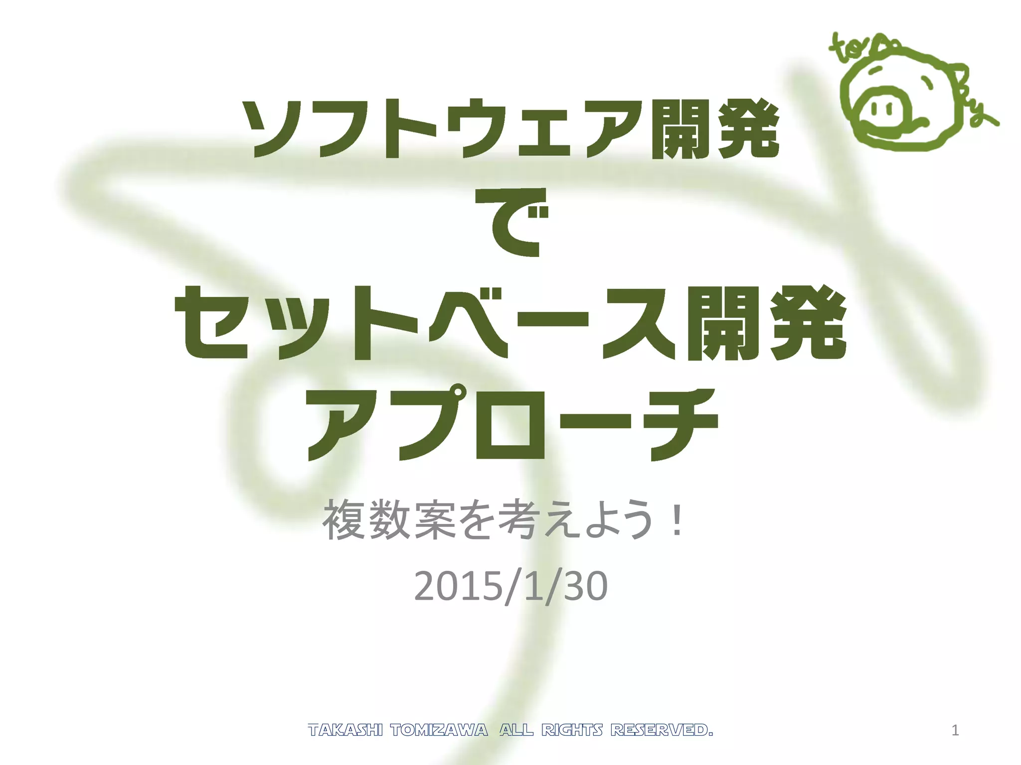複数案を考える セットベース開発 として、設計、実 装時に、複数案 を考えよう! Takashi tomizawa All