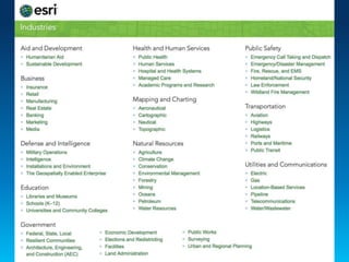 The document outlines various initiatives and programs from different organizations aimed at enhancing educational technology in schools. Notable contributions include AT&T's $100 million donation for mobile internet and devices, Autodesk's free software and training programs for educators, and ESRI's GIS resources for K-12 schools. The document emphasizes the importance of accessibility, support, and innovative tools to foster creativity and learning in educational settings.