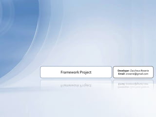 This document describes a .NET framework project and library management system project created by Zaccheus Roserie. The framework project involved building parts of a business tier for a retail company using OOP techniques like inheritance, polymorphism, and exception handling. The library management system project involved creating a Windows forms front-end application for library functions like checking books in/out and adding members. It demonstrated techniques like N-tier architecture, input validation, and exception handling. The final project recreated the data access layer using ADO.NET and LINQ to access a SQL Server database.