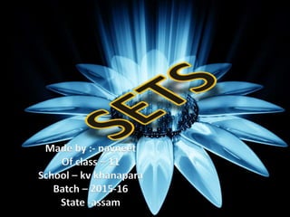 This document contains information about sets and set operations. It defines what a set is, provides examples of standard sets like natural numbers and real numbers, and discusses concepts like subsets, power sets, Cartesian products, unions, intersections, differences and complements of sets. It also presents methods to prove equations involving set operations.