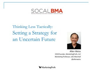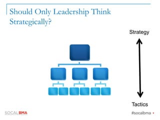 The document discusses the importance of strategic thinking for everyone within an organization, not just leadership, emphasizing the connection between strategy and tactics for improved decision-making. It highlights techniques like possibilities thinking and lateral thinking to cope with change and uncertainty, while providing insights into digital marketing strategy and industry foresight. The author advocates for a proactive approach to future challenges by fostering strategic thinking across the company.