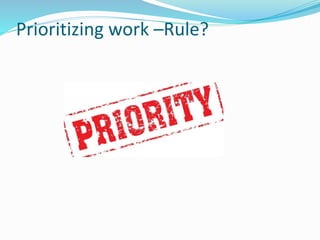 The document discusses a prioritization matrix for a services organization, emphasizing the impact of various initiatives on business effectiveness and personal career development. It outlines key areas such as organizational alignment, team training, and the importance of best practices in achieving goals. Additionally, it highlights the need for continuous improvement and collaboration within teams to effectively prioritize work and address development challenges.
