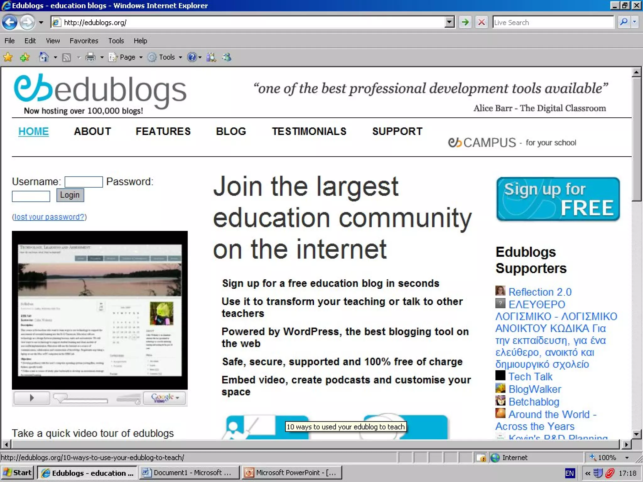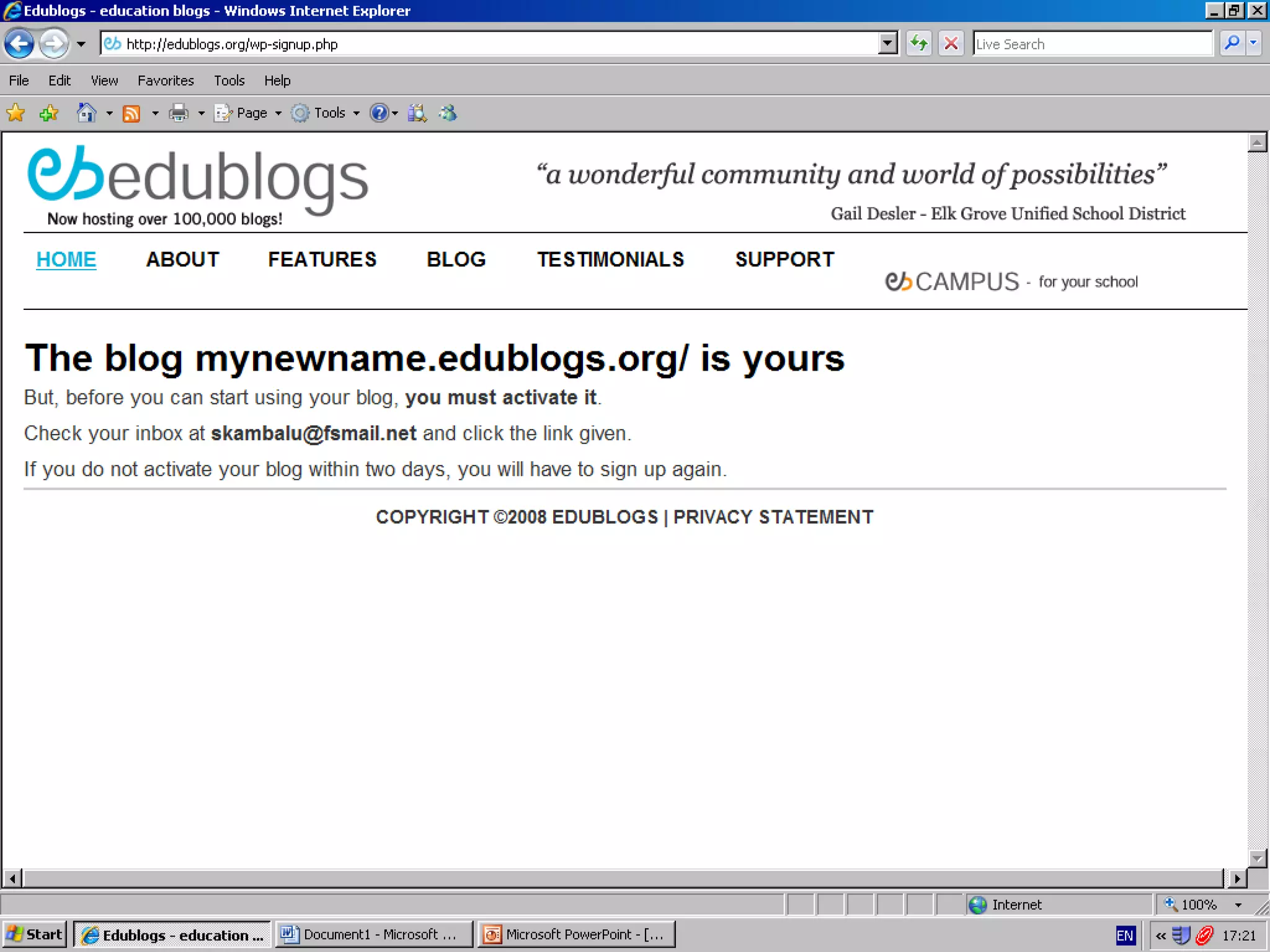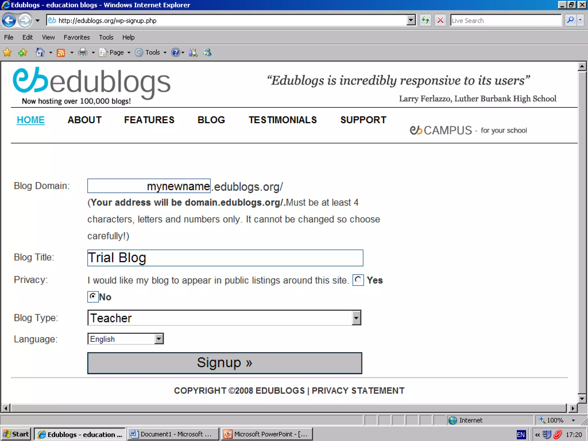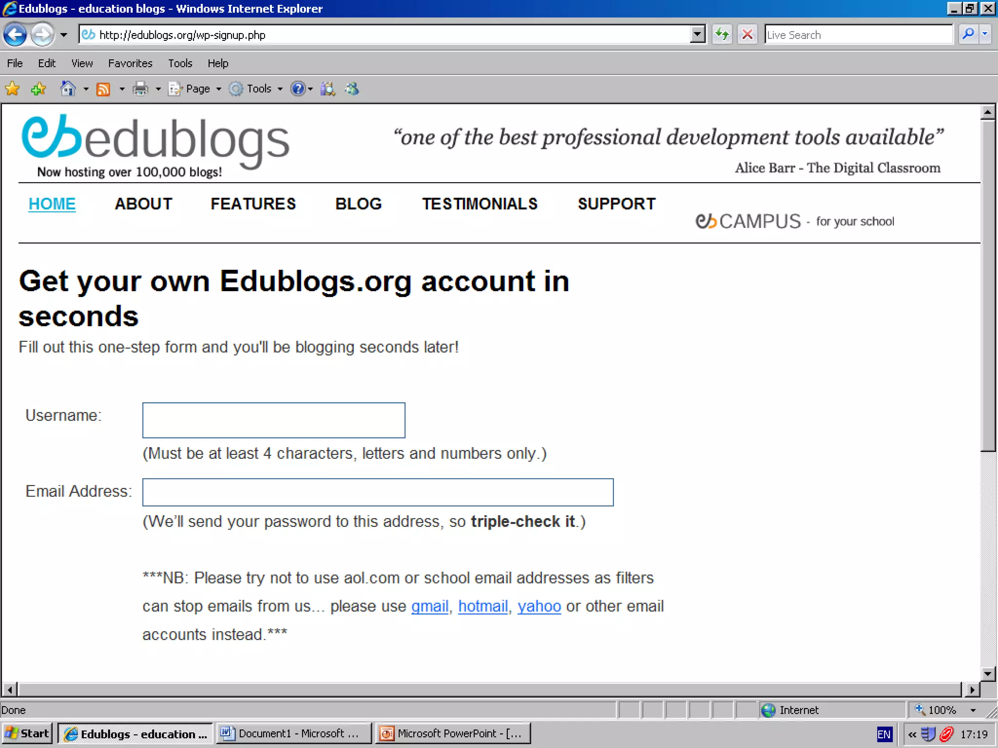 To sign up, go to www.edublogs.org and click on the big blue button.