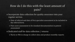 3) Developing standard operating procedures that detail patient flow, roles and responsibilities, quality indicators, and standards to ensure the service is delivered safely and effectively.
