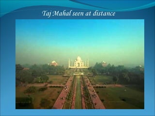 3) The Taj Mahal in India, called one of the most beautiful buildings in the world, built by Shah Jahan as a mausoleum for his wife.