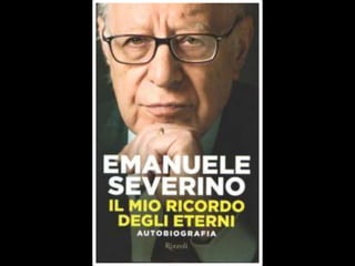 Il documento esplora la riflessione filosofica di Emanuele Severino, evidenziando il significato dell'essere, la sua eternità e il rifiuto del nichilismo. Attraverso la narrazione autobiografica, l'autore condivide i legami con i suoi defunti e come la filosofia e la fede si intrecciano nella sua vita e nel suo pensiero. Infine, si sostiene che la verità incontrovertibile e il destino dell'essere siano centrali nella sua visione del mondo.