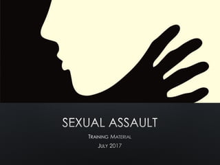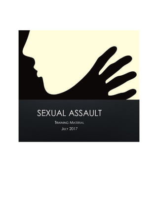 This training lesson plan addresses sexual assault awareness for law enforcement and corrections professionals, highlighting definitions, statistics, barriers to reporting, and best practices. It emphasizes the importance of understanding the context of sexual violence, institutional failures, and the need for improved victim support and response protocols. The document also outlines challenges faced by investigators and the legal landscape surrounding sexual assault cases.