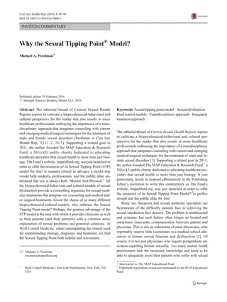 This document discusses the Sexual Tipping Point (STP) model, a dual-control biopsychosocial model for understanding sexual function and dysfunction. It provides the following key points: