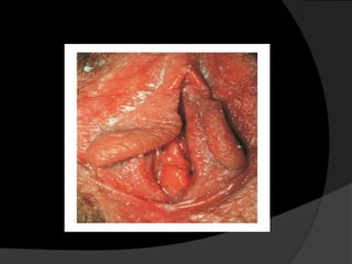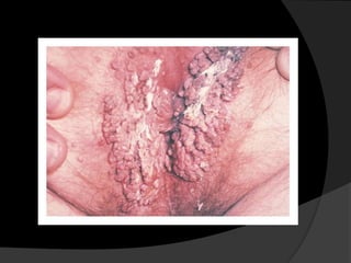 This document discusses sexually transmitted infections (STIs), including their causes, symptoms, transmission, treatment and prevention. It covers common STIs like chlamydia, gonorrhea, herpes, HPV, syphilis and trichomoniasis. It also addresses vaginal inflammatory conditions like bacterial vaginosis and candidiasis. The key points are that STIs are often passed through unprotected sex; have a variety of symptoms; and can be treated with antibiotics or other medications, with prevention through education and barrier methods.