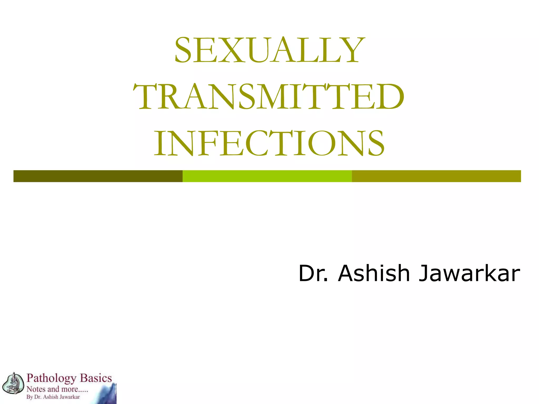 Dr. Ashish Jawarkar discusses the significant health risks of sexually transmitted infections (STIs), particularly their potential complications like infertility and cervical cancer, alongside their asymptomatic nature. Key STIs covered include syphilis, gonorrhoea, and chlamydia, with emphasis on their pathogenicity, diagnosis, and treatment methods. Early screening and joint treatment of partners are crucial for effective management and prevention of further transmission.