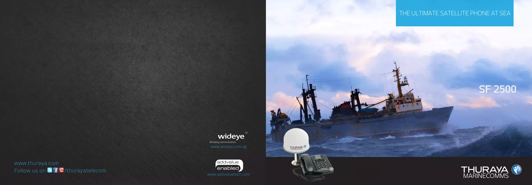The SF 2500 is a satellite phone terminal designed for reliable performance in harsh maritime environments. It features an easy to install active antenna, GPS tracking, emergency alert functions, and supports voice calls and SMS. The terminal is robust, affordable, and suitable for fishing vessels, pleasure boats, and other sea vessels.