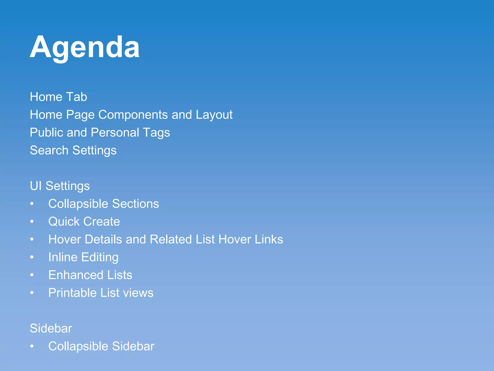 This document provides an overview of the Salesforce user interface and customization options. It discusses components of the home page layout, public and personal tags, search settings, and various UI settings that can be configured like collapsible sections, quick create, and hover links. Calendar functionality and drag and drop editing are reviewed. Finally, it mentions enhanced profile views and links to additional Salesforce training resources from the author.