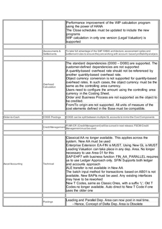 This document summarizes the key impacts of migrating to SAP S/4HANA Finance. Some of the main points are: