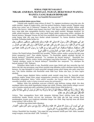 Dokumen ini membahas pentingnya menikah dalam ajaran Islam, mengutip berbagai hadis yang menekankan bahwa orang yang tidak menikah dianggap miskin meskipun memiliki harta. Menikah dianggap sebagai sunnah para nabi dan merupakan tanda kekuasaan Allah, serta memberikan kepastian rezeki. Penulis mendorong umat Islam untuk segera menikah demi kesejahteraan dan keberkahan hidup.