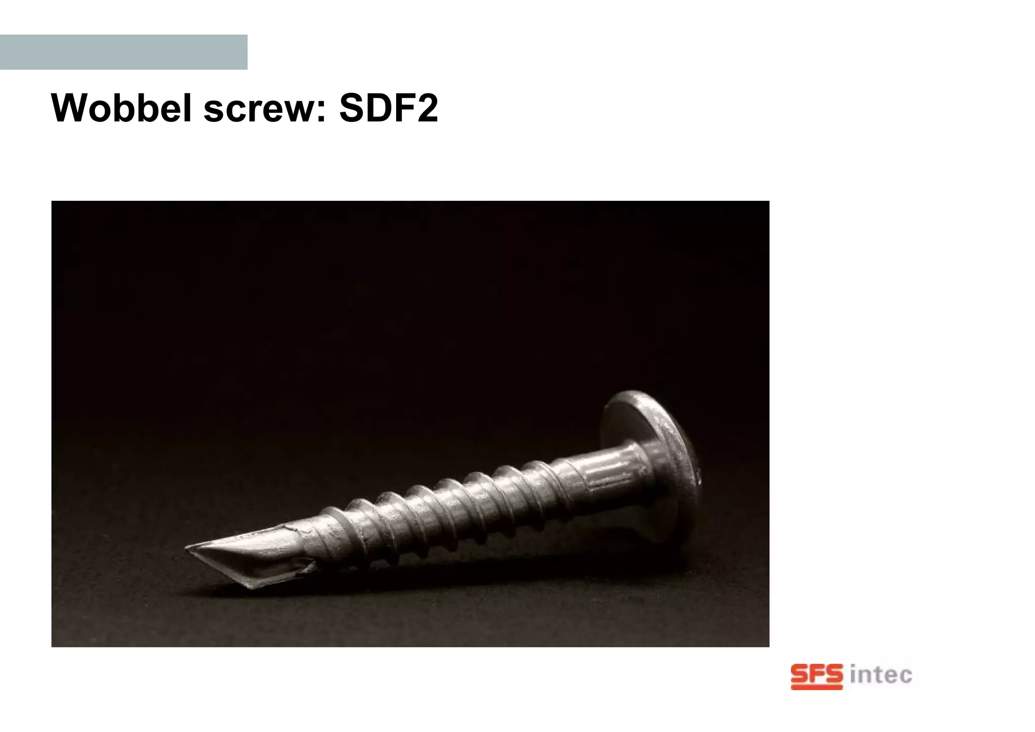 1) The document describes the Wobbel screw SDF2, a stainless steel fastener designed to fix non-metallic cladding panels to thin steel or aluminum.