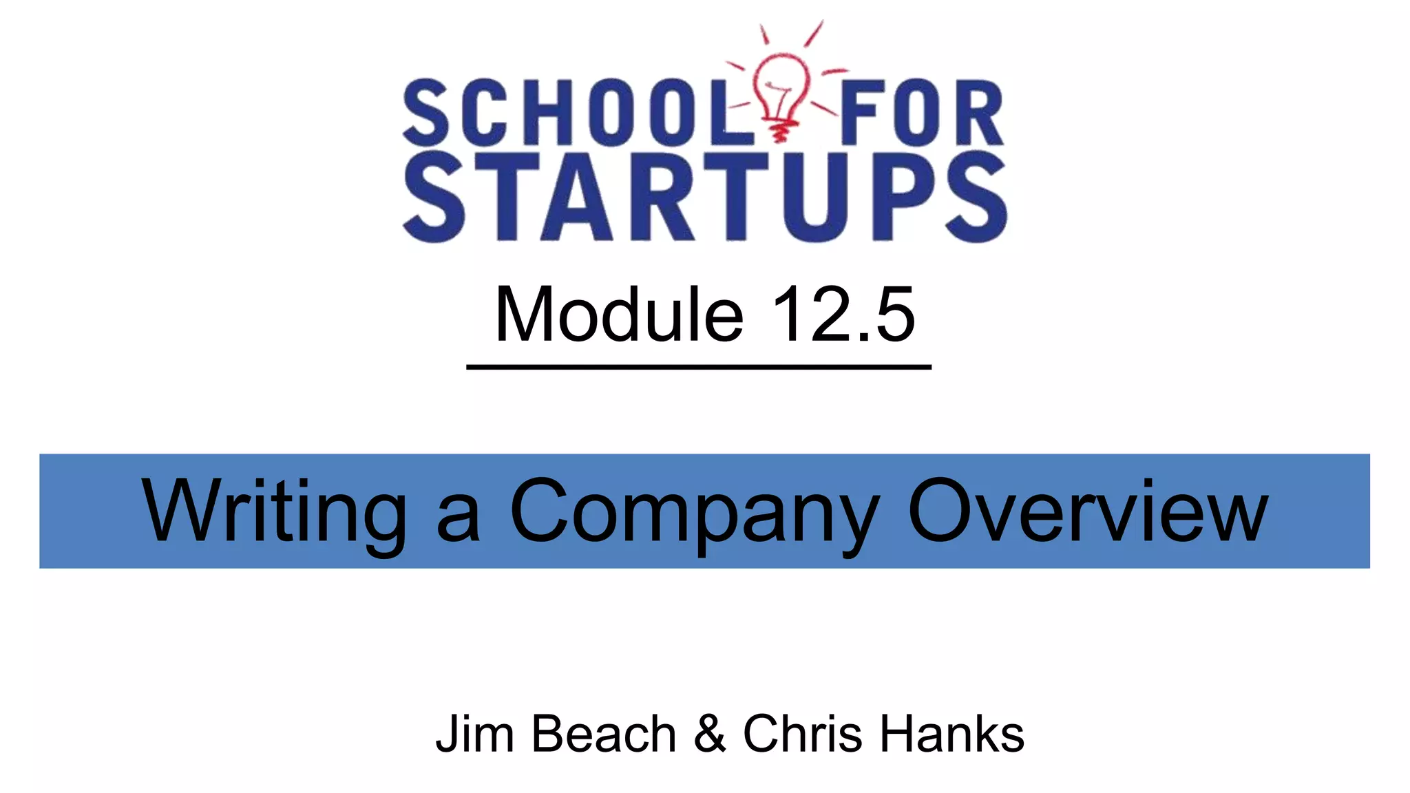 This document provides guidance on writing a company overview, including sections to cover such as introduction, slogan, mission statement, history and current status. It recommends including the company's name and location in the introduction. The overview section should describe how the company's idea meets customer needs and major achievements. The nature of business section should explain the market needs, satisfaction method, and customer segments. The mission statement should uniquely define the company's purpose and reason for existing. The current status should explain why the company will succeed through elements like customer satisfaction, efficiencies, personnel and location.