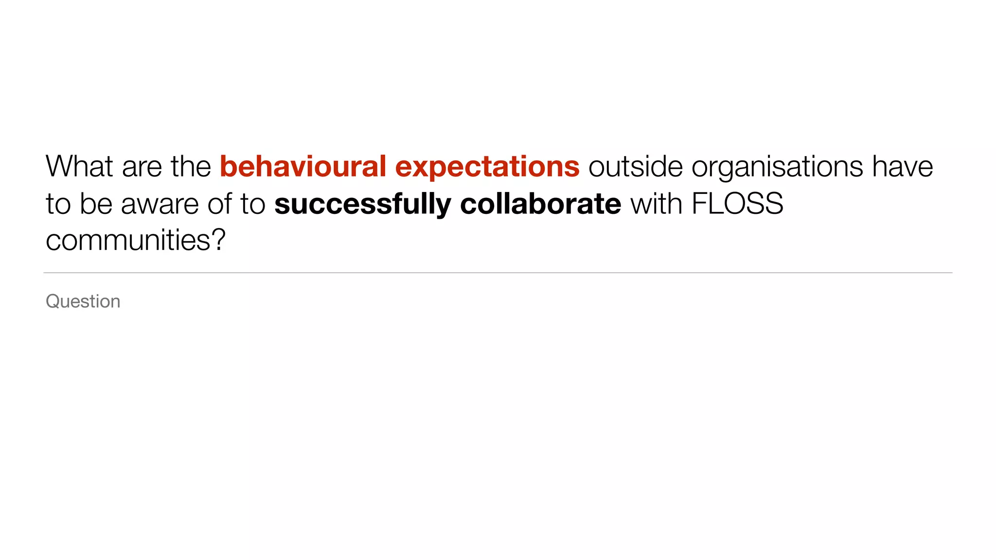 The document discusses the governance of open source software communities, emphasizing the importance of behavioral expectations for collaboration between organizations and free/libre open source software (FLOSS) communities. It highlights the need for community governance, the development of social norms, and the motivations for contributors to engage with the community, focusing on meritocracy and ethical principles. The author underscores the balance between open and closed elements in software development and encourages awareness of barriers to entry.