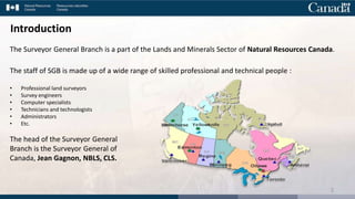 The Surveyor General Branch (SGB) of Natural Resources Canada presented a survey capacity development program aimed at enhancing the surveying skills of First Nation communities. This initiative is designed to promote self-governance in land management by providing mentorship and practical surveying training over five years to 24 communities. The program focuses on building knowledge, increasing engagement in land surveying as a career, and ultimately reducing economic leakage within communities.