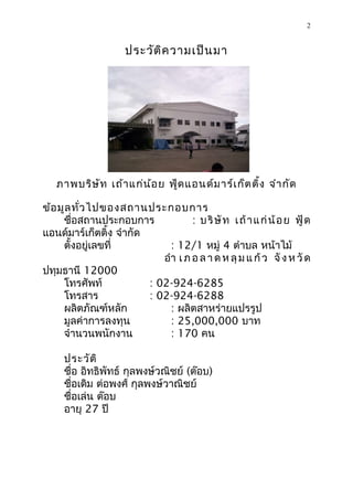 ชื่อสถานประกอบการ : บ ริ ษั ท เ ถ้ า แ ก่ น้ อ ย ฟู้ ด