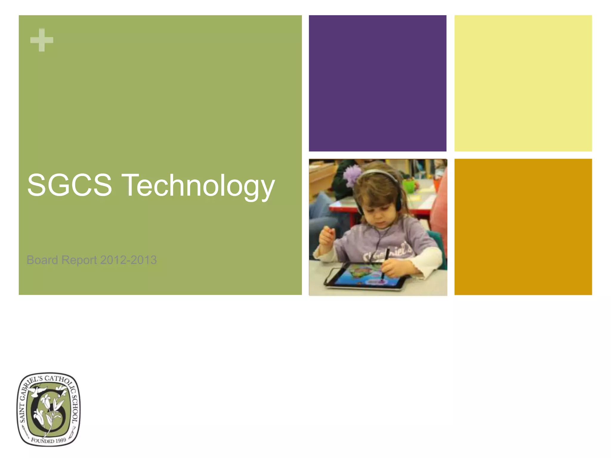 This document provides a summary of the 2012-2013 technology plan and initiatives at SGCS. It outlines the 5-year technology plan goals in areas like infrastructure, professional development, and assessment. It describes initiatives using tools like eSpark, Smart Boards, and iPads for research. It also discusses a Turnitin pilot, digital learning day, student projects, and use of telepresence. The document reviews the technology curriculum, 1:1 implementations, professional development, and instructional support. It discusses the head's education committee role and recommendations. It concludes by looking ahead to future technology goals and investments.