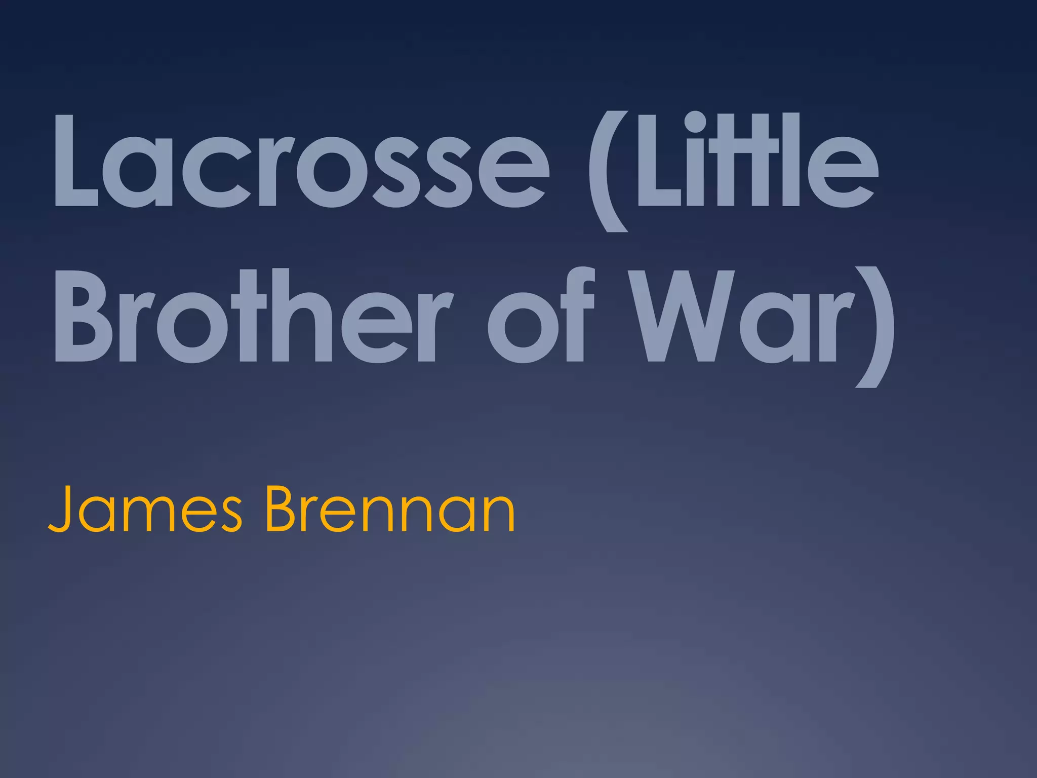 This document provides a historical overview of lacrosse, from its origins as a Native American sport to its modern form. It details how lacrosse was originally played by Native American tribes for religious and military purposes over large fields with many players. Over time, the sport developed standardized equipment like sticks and balls, and established more formal rules and field dimensions as it grew in popularity. The document also outlines the fundamentals of modern lacrosse, including techniques for catching, passing, shooting, and playing defense.