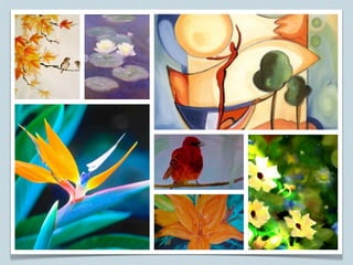 The document provides an overview of the history and techniques of painting. It discusses how painting has been used throughout history for personal expression and communication. Various styles are mentioned, from ancient Egyptian and Mayan paintings through modern movements like Impressionism, Cubism, and Abstract Expressionism. Different painting media like tempera, watercolor, oil, pastel, acrylic, and collage are described. The document concludes by discussing how art can improve personal development and quoting Picasso on the importance of remaining an artist.