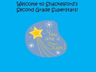 Mrs. Shackelford welcomes students to her 2nd grade classroom. She has over 19 years of teaching experience, with degrees from the University of Alabama and Converse College. Her classroom will have positive rules and consequences, as well as a reward system using "Superstars". Students will study various subjects through projects and field trips. Assessments will include DIBELS testing, Fountas & Pinnell reading assessments, and math tests. Communication with parents will occur through biweekly progress reports, quarterly report cards, and a classroom website.